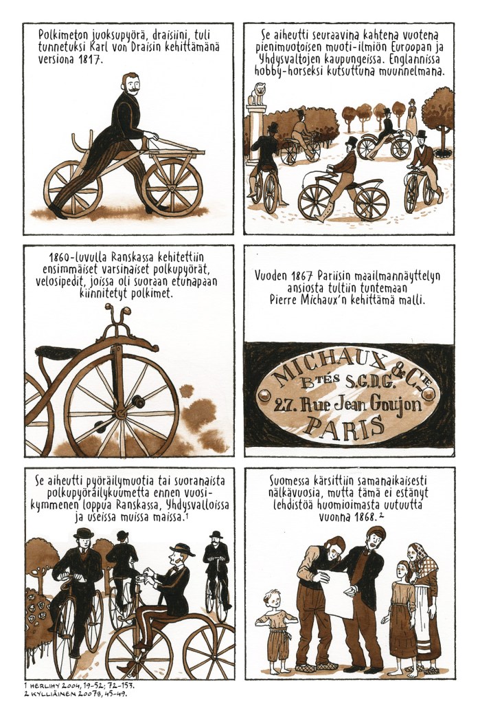 Kylliäinen, Mikko (2007a): Juoksukoneesta ketjuvetoiseen polkupyörään. Teoksessa Velomania: Pyörällä halki aikojen. Tampere: Tampereen museoiden julkaisuja 98, 6–39.