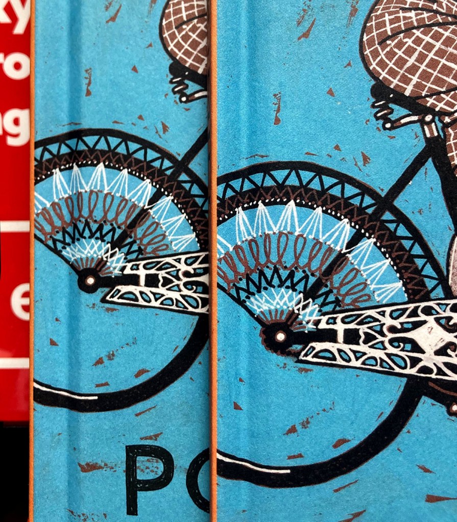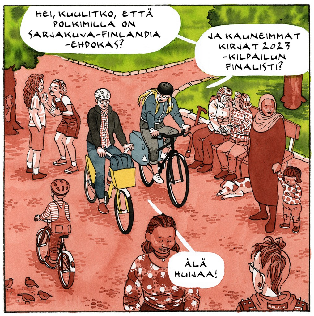 Toiseen painokseen on tehty korjauksia. Nyt kannen pyöräilijä pääsee paremmin etenemään.